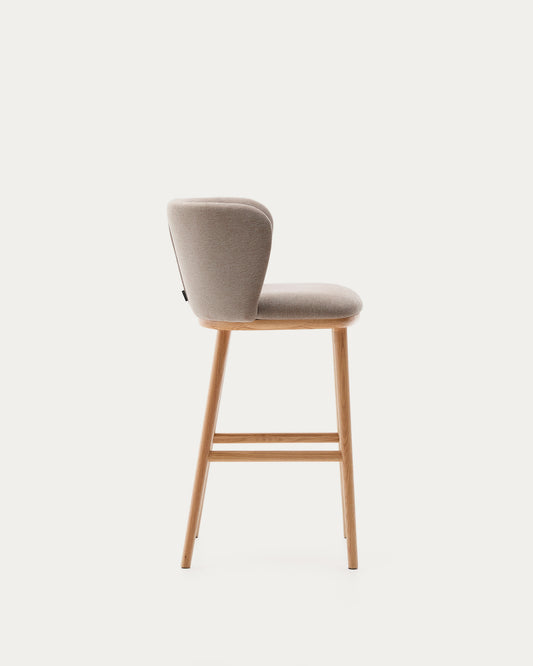 Tabouret Ciselia chenille marron et bois de frêne finition ton naturel FSC Mix Credit 65 cm