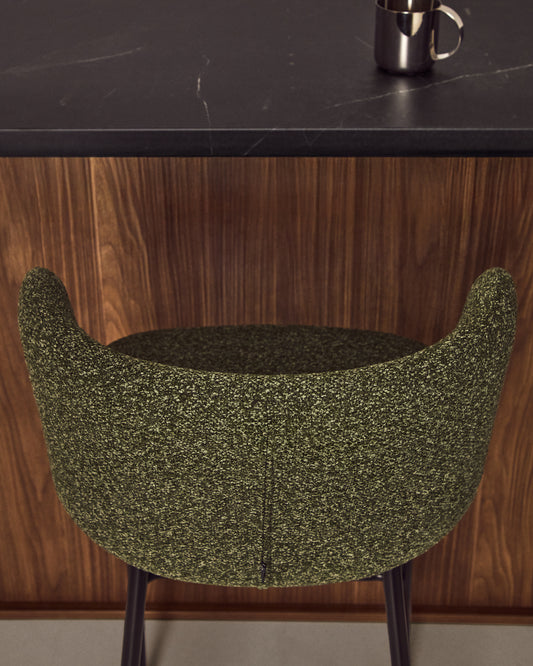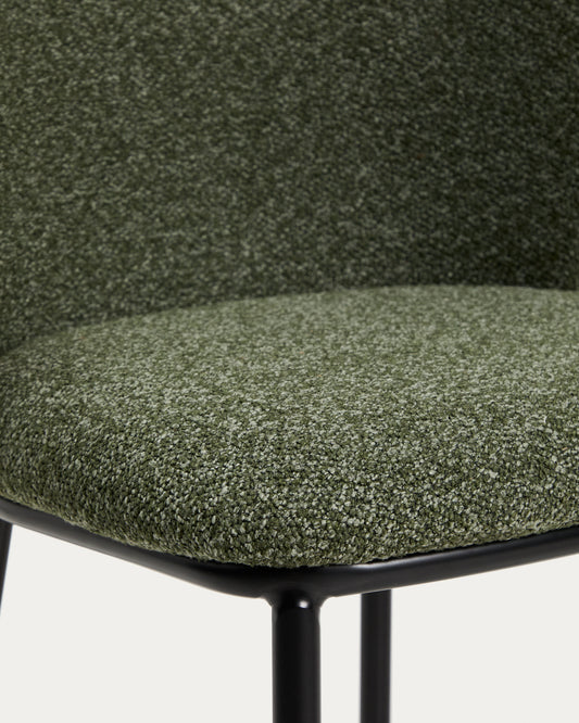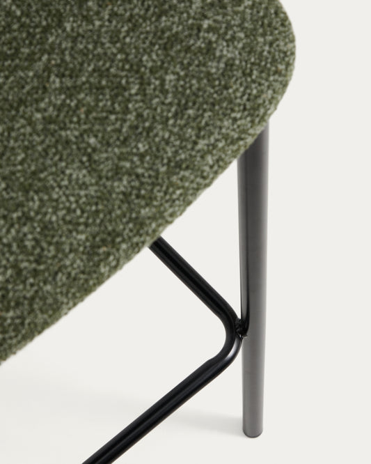 Tabouret Ciselia en chenille épaisse vert foncé et pieds en acier avec finition noire FSC Mix Credit 75 cm