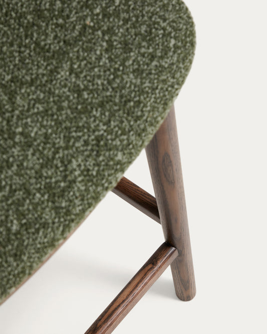 Tabouret Ciselia en chenille épaisse vert foncé et pieds en bois de frêne avec finition ton noyer FSC Mix Credit 65 cm