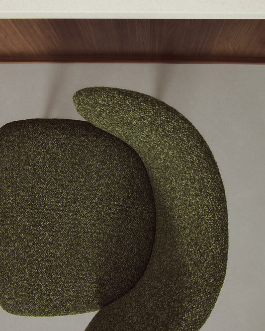 Tabouret Ciselia en chenille épaisse vert foncé et pieds en bois de frêne avec finition ton noyer FSC Mix Credit 65 cm