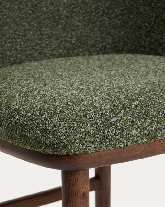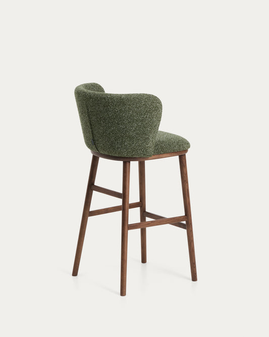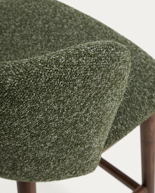 Tabouret Ciselia en chenille épaisse vert foncé et pieds en bois de frêne avec finition ton noyer FSC Mix Credit 75 cm
