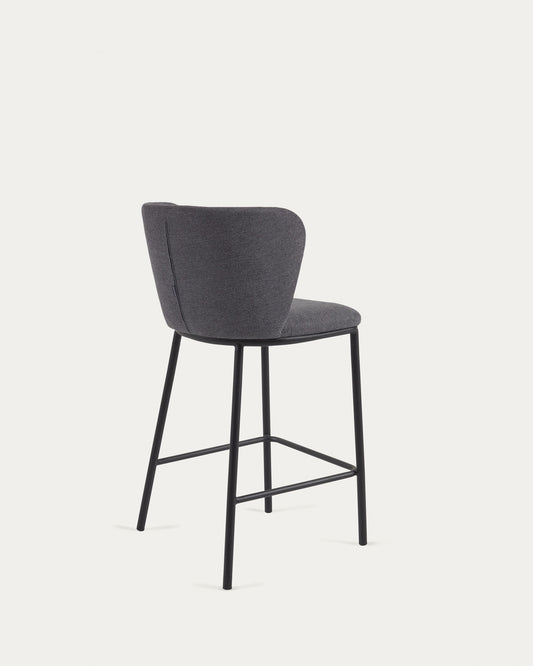 Tabouret Ciselia en chenille gris foncé et pieds en acier noir hauteur 65 cm FSC Mix Credit