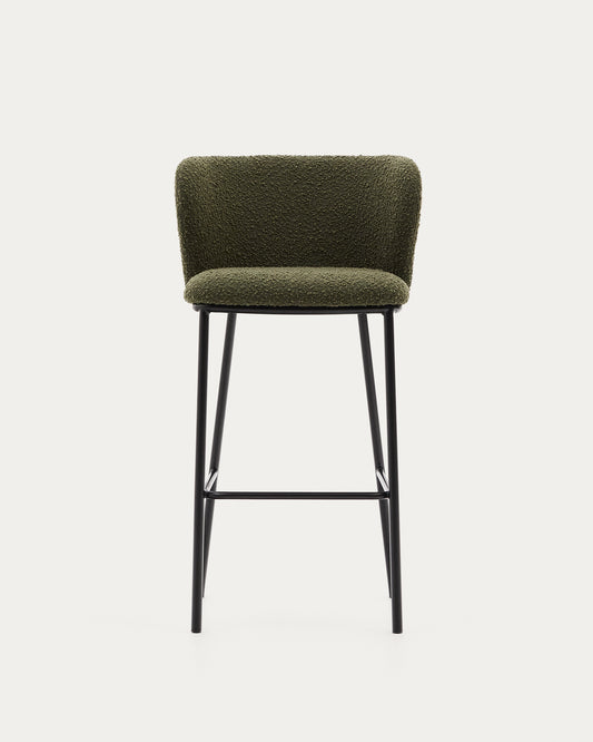 Tabouret Ciselia en tissu effet bouclette vert et acier noir hauteur 75 cm FSC Mix Credit