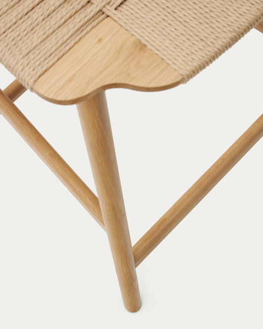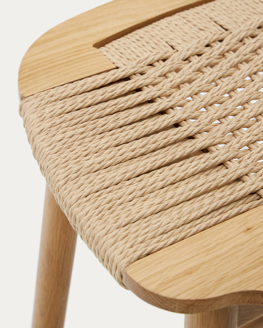 Tabouret Enit en corde papier beige et bois de chêne finition naturelle 65cm FSC Mix Credit