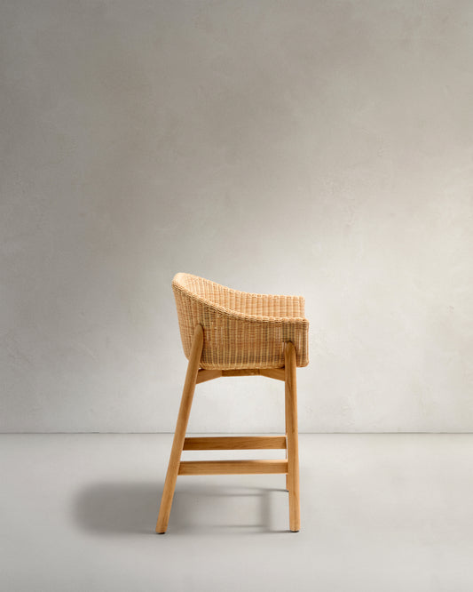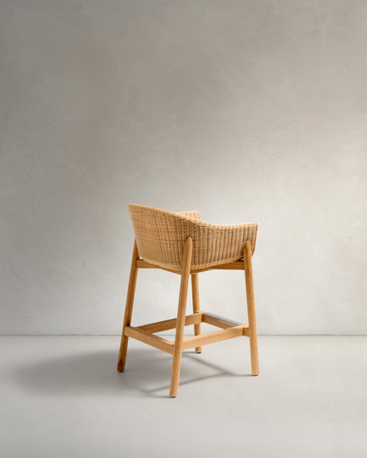 Tabouret Galea en bois de teck et rotin synthétique 65 cm FSC 100 %