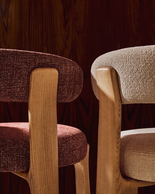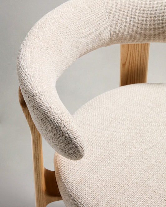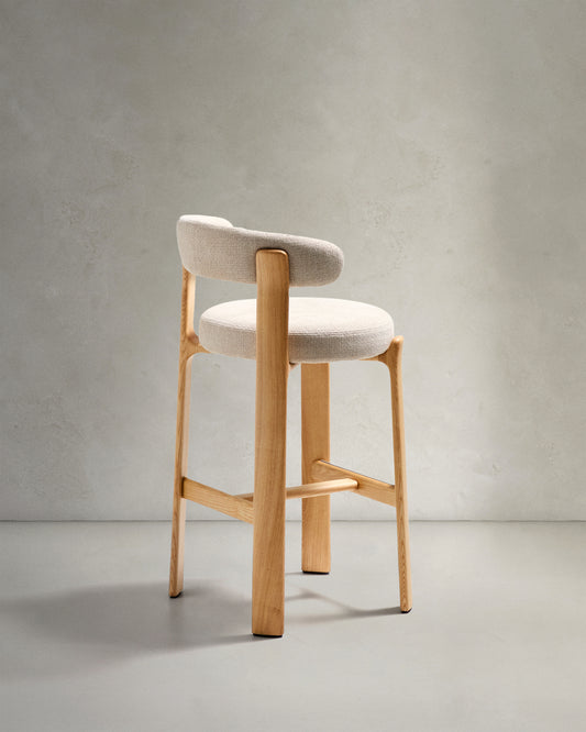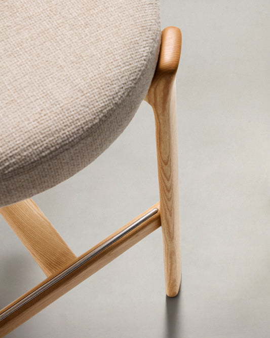 Tabouret Granite en tissu chenille beige et bois de frêne avec finition ton naturel FSC 100 % 75 cm
