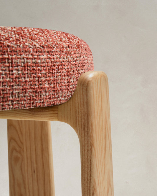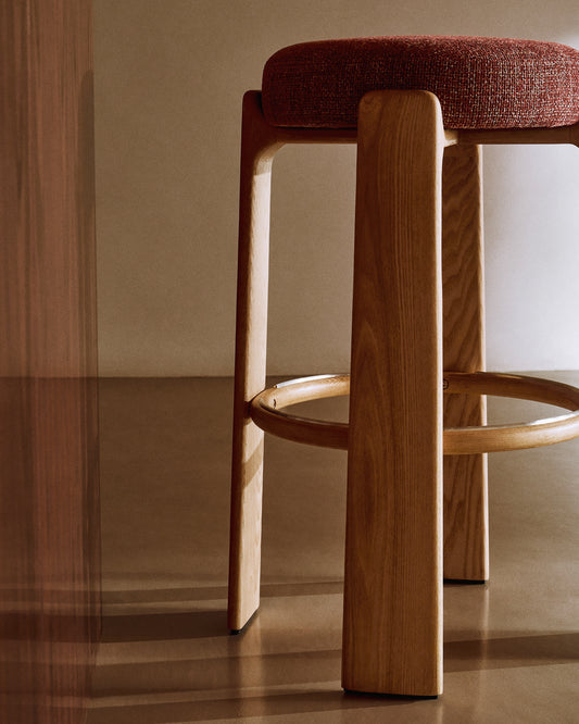 Tabouret Granite en tissu chenille terracotta et bois de frêne avec finition ton naturel FSC 100 % 75 cm