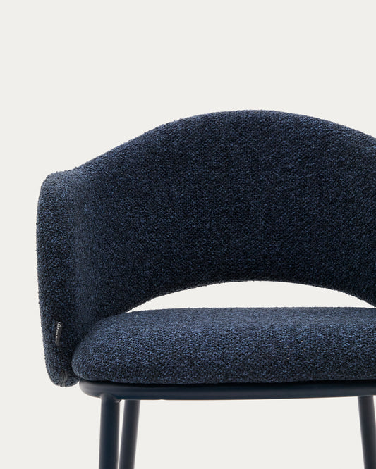 Tabouret Maina en chenille bleue et pieds en acier finition bleue FSC Mix Credit 65 cm