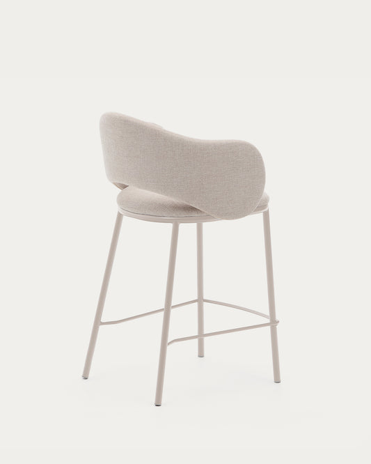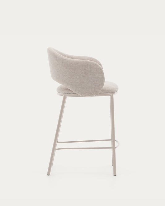Tabouret Maina en tissu chenille beige et pieds en acier beige FSC Mix Credit 65 cm