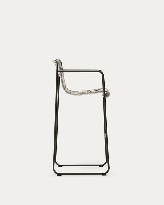 Tabouret Maurina en acier galvanisé vert et corde écrue et grise 74,5 cm