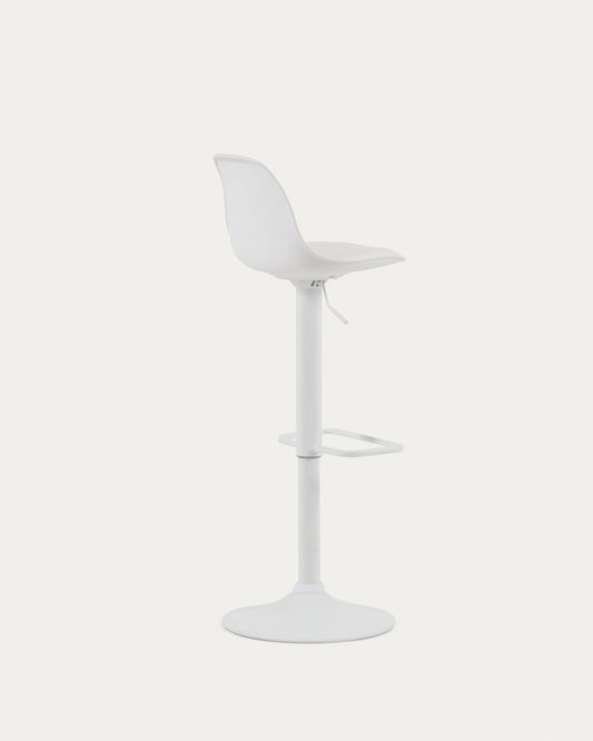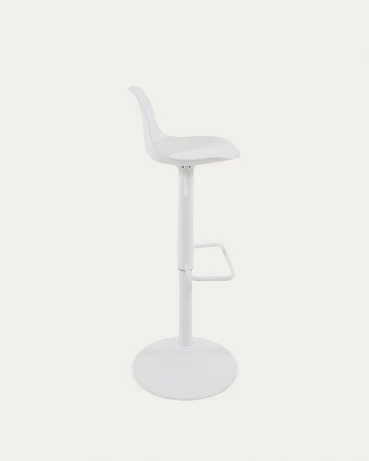 Tabouret Orlando - T en polyuréthane blanc et acier blanc mat 60-82 cm