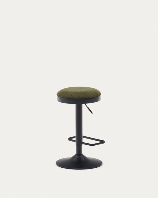 Tabouret Zaib en chenille vert foncé et acier noir mat hauteur 63-84 cm FSC 100%