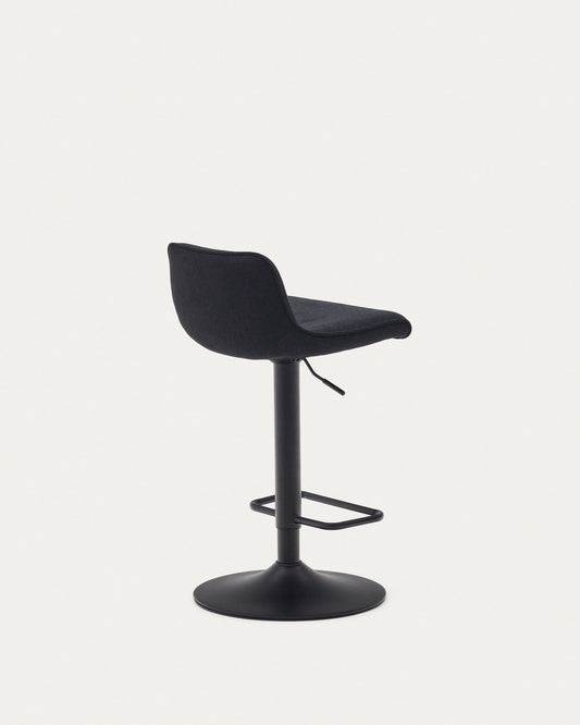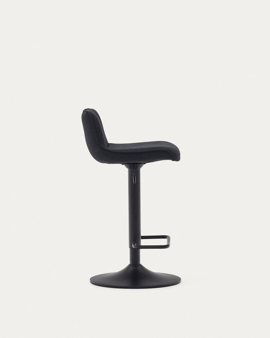 Tabouret Zenda en chenille noir et acier noir mat hauteur 81-102 cm FSC 100%