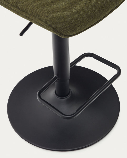 Tabouret Zenda en chenille vert foncé et acier noir mat hauteur 81-102 cm FSC 100%