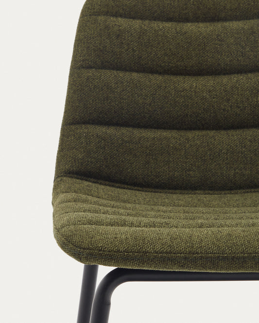 Tabouret  Zunilda en chenille vert foncé et acier avec finition noir mat hauteur 65 cm FSC 100%