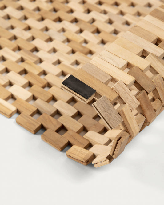 Le teck est la meilleure option pour votre salle de bain et c'est avec cette matière qu'a été réalisé le tapis de bain Azuray de 40 x 60 cm pour vous éviter le contact froid du sol. En plus d'être résistant à l'humidité et aux micro-organismes qui l'accompagnent, il est durable et sèche rapidement. Élaboré avec des morceaux rectangulaires entrecroisés, chacun présente ses propres veines et tonalités uniques, pour créer une mosaïque singulière et différente sur chaque tapis.