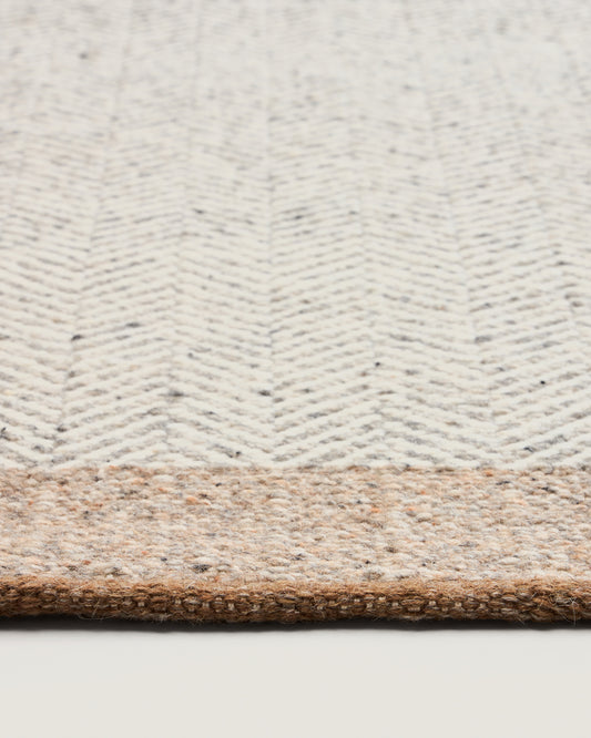 - Tapis de couloir en laine à motif jacquard à chevrons beiges.
