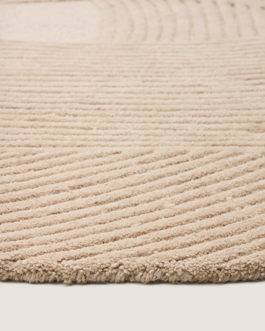 - Tapis blanc avec motifs jacquard ton sur ton 100 % laine.