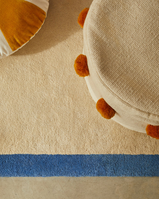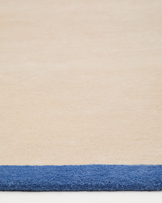 - Tapis beige avec liseré bleu tout autour.