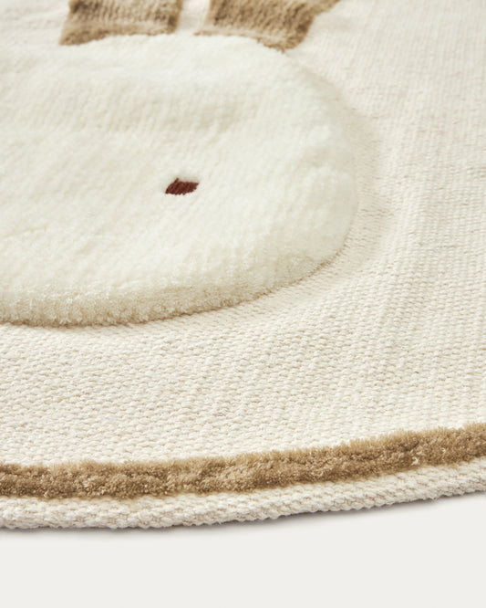 Tapis rond Yanil en coton beige petit lapin Ø 100 cm