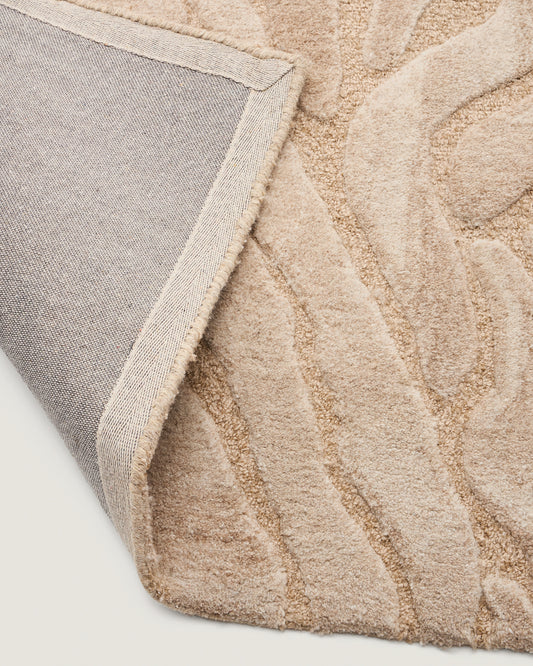 Ce tapis confectionné à la main se distingue par son motif jacquard d’inspiration zébrée, qui crée un effet 3D. La qualité de la laine offre une texture douce et agréable sous les pieds, ainsi qu’une excellente résistance à l’utilisation quotidienne. Sa confection artisanale met en valeur les détails et la profondeur du motif, en faisant un élément décoratif qui apporte du caractère à tout espace. La laine utilisée pour cette pièce peut libérer une certaine quantité de fibres, un processus naturel qui se contrôle facilement en passant régulièrement l’aspirateur dans le sens des fibres. Si des fils lâches apparaissent, ils doivent être coupés soigneusement avec des ciseaux pour maintenir le tapis en parfait état. Une pièce polyvalente et élégante, pensée pour valoriser aussi bien les espaces domestiques que professionnels.