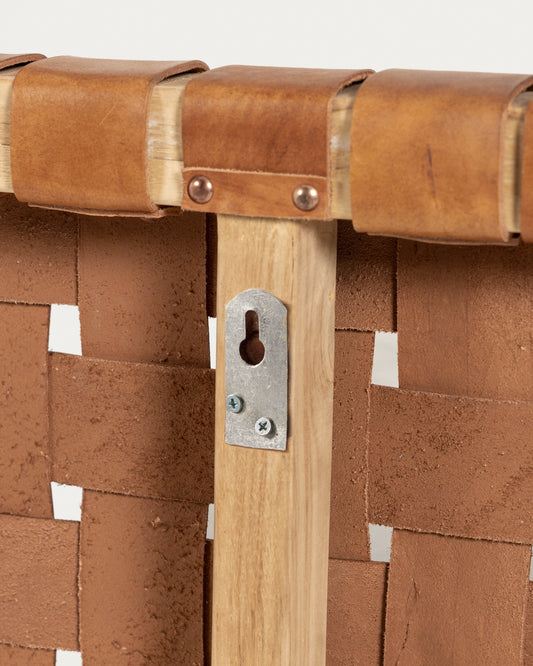Tête de lit Calixta en bois de teck massif et cuir avec finition naturelle pour lit jusqu’à 150 cm