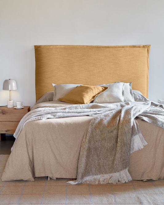 Tête de lit déhoussable Tanit en lin jaune moutarde pour lit de 200 cm