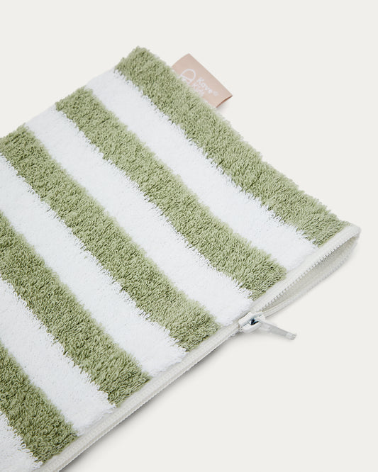 Trousse de toilette Nuni en coton à rayures blanches et vertes
