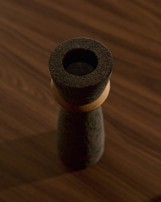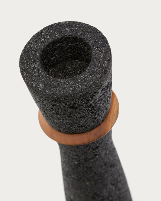 Vase Naro en pierre noire et bois de teck 30 cm
