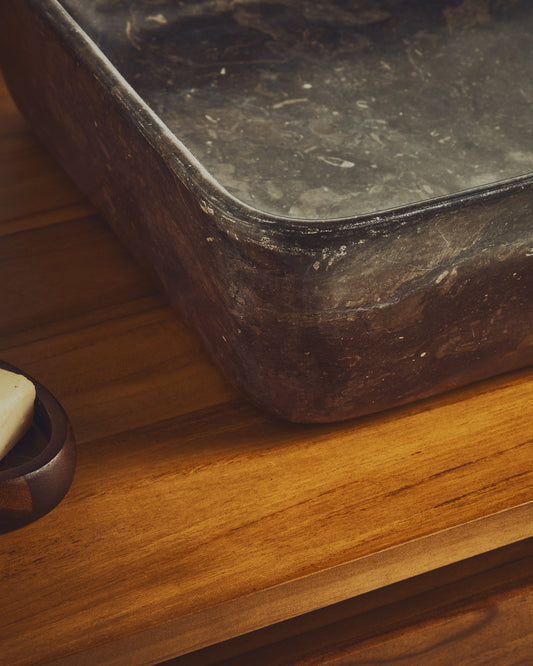 - Vasque à poser en marbre de Java gris.