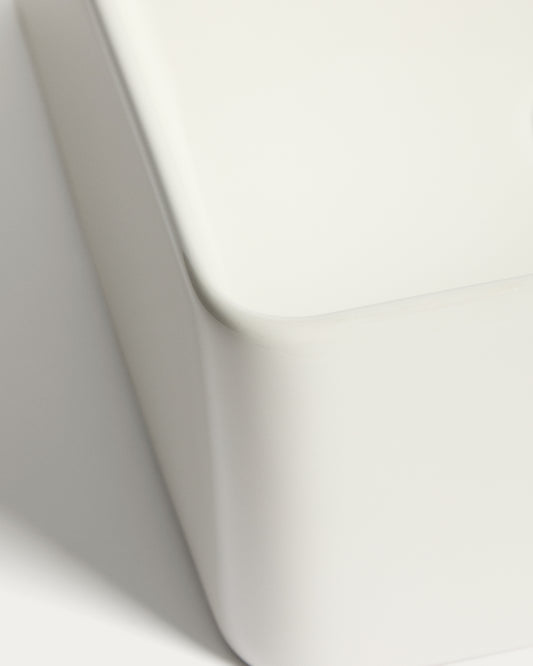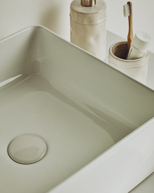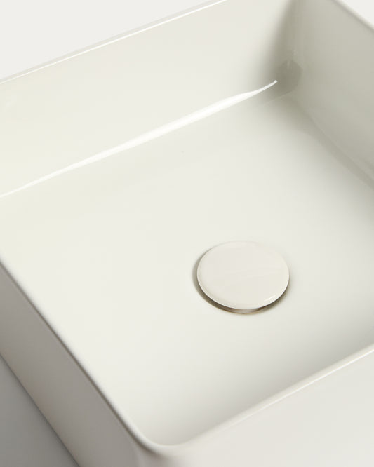 - Vasque à poser en céramique blanche émaillée.
