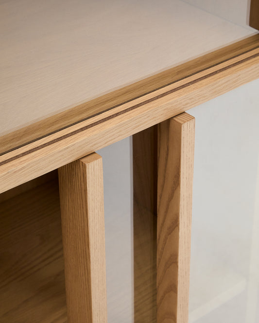 Vitrine Helvine 4 portes et 2 tiroirs placage de chêne et verre trempé 100 x 174 cm FSC 100 %